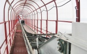 Натяжная секция Выполнена из оцинкованной стали. Состоит из натяжного барабана, датчика контроля скорости. Секция имеет винтовое натяжное устройство, которое необходимо для придания транспортной ленте натяжения, достаточного для передачи тяговой силы трения. |