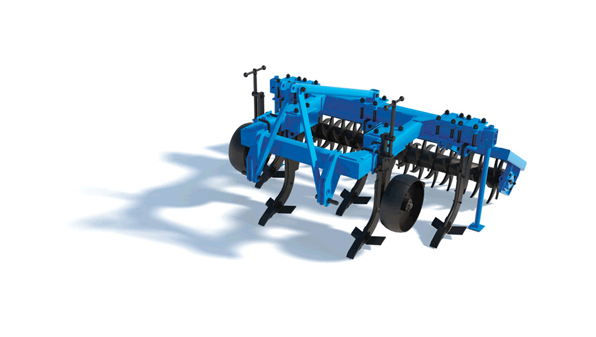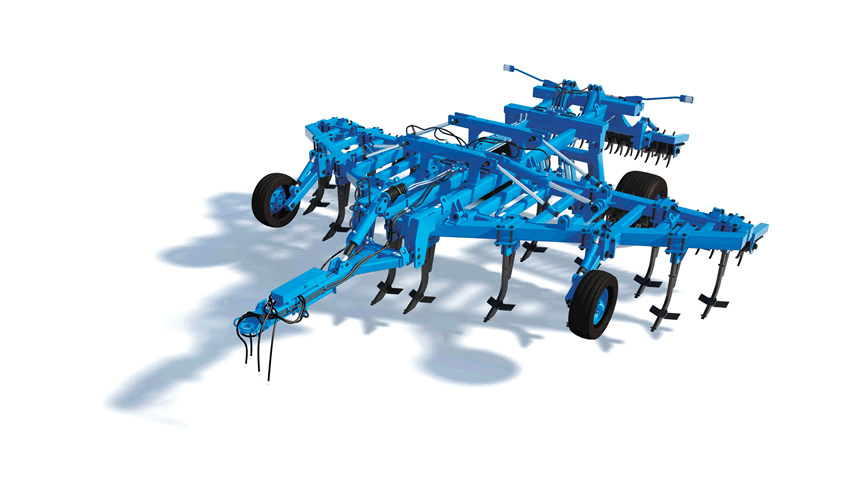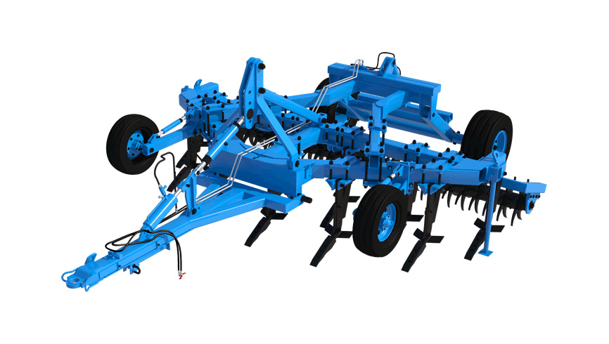 Стойки рабочих органов, оснащенные долотьями и парой подрезающих крыльев. Крылья врезаются в почву на заданную глубину. Таким образом, происходит глубокое рыхление почвы со сдвигом пласта, дренаж. Комплект подрезающих крыльев дополнительно подрезает пласт почвы и приподнимает его, осуществляя более полное рыхление. Установка и регулировка глубины обработки обеспечивается за счет механизмов опорных колес.