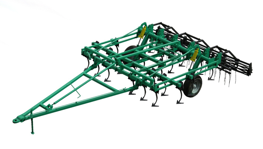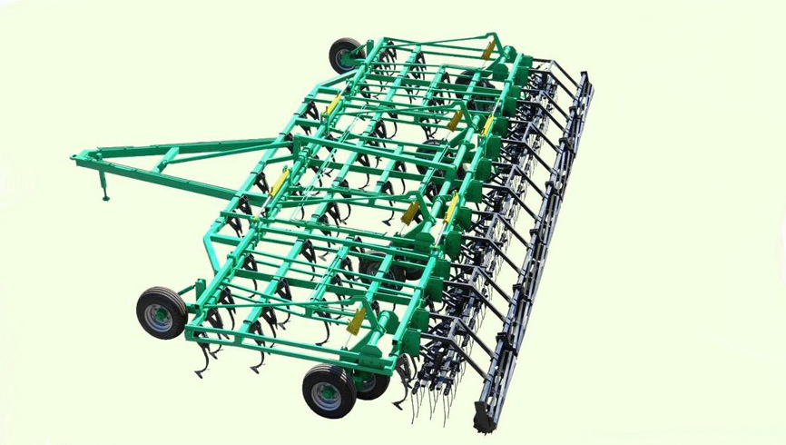 Культиваторы снабжены стрельчатой лапой с углом крошения 120, пружинными трехрядными боронами и катками. Глубина обработки стрельчатыми лапами до 10см., боронами 4-8 см. Захват стрельчатых лап 250 мм. Стрельчатые лапы устанавливаются на подпружиненных стойках, угол вхождения лап в почву регулируется пружиной. Пружинные бороны имеют 4 положения для регулировки глубины обработки. Каток работает как в пассивном, так и активном положении, в зависимости от вида обработки. Превосходное крошение и выравнивание почвы по длине и ширине поля достигается за счет 5-6 рядов расположения рабочих органов. Подрезание растительных остатков составляет 100 %, за счет 55 % перекрытия лап.