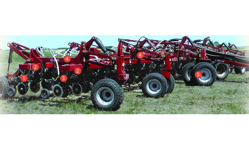 Высокопрочная рама Пневматической Сеялки Salford 525 имеет достаточный вес и прочность для использования на ней Двухдисковых сошников с поддержанием заданной глубины, даже при расстоянии между рядами 19см и вертикальном давлении в 227кг.